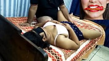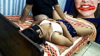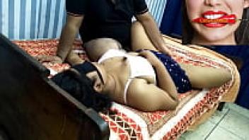 The step-didi chuda loudly while applying chilly oil.