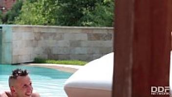 Sunbathing Beauty Gets Double Penetration by the Pool