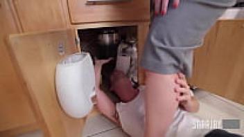 Stacked Wife Sara Jay Milks Her Plumber's Hard Cock in the Kitchen!
