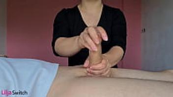 In the cfnm femdom handjob homemade scene, a hot mistress wants to play with a nude man.
