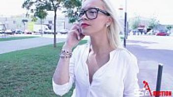 After her meeting, Busty Avy wants a quick booty call.