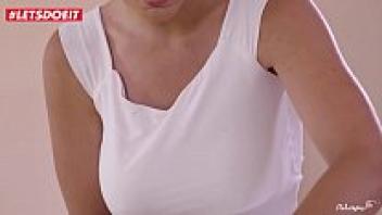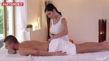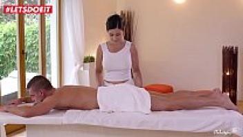 She is massaged by a hot, busty masseur.