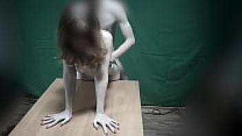 Tammy, a long-haired teen, shakes that nice ass solo!