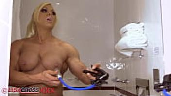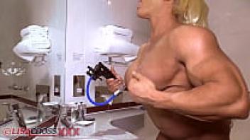 Lisa Cross Clit Pump, a professional bodybuilder, in the restroom