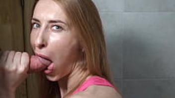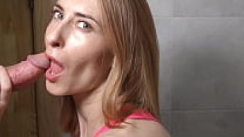 She gives me an incredible blowjob in the restroom after I pick up a gorgeous milf at the bar.