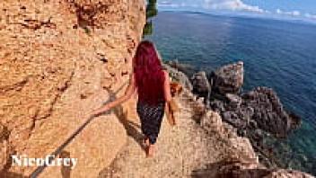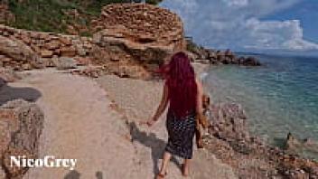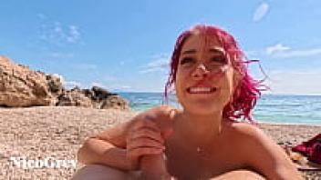 Uncaught: A British Redhead's Audacious Beach Blowjob Incites a Wild Dog!