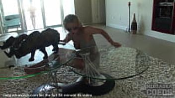 Bree Haze exercising in the nude while playing sports and then using the jump rope handles for masturbation