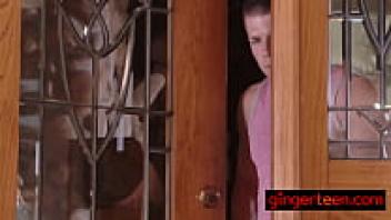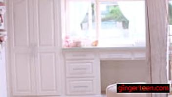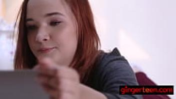 A gorgeous redhead youngster gets a brutal beating on her tiny pussy.