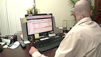 While she is at work, the blonde doctor plays with her vibrator.