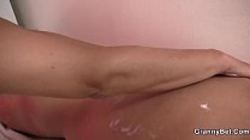 From behind, he adores the slender grandmother masseuse.