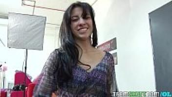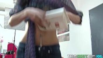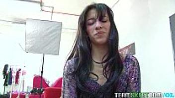 Using her webcam, a teenage Latina takes off her clothing in real time.
