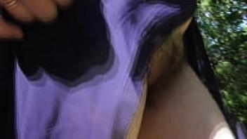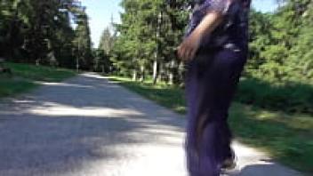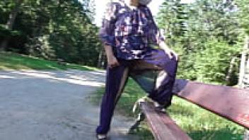 enjoying a leisurely meal in a park while nude. displaying one's pussy and breasts in public.