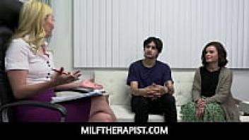 Elias Cash and Dharma Jones, a milf therapist, engage in sexual activity with Dr. Aaliyah Love as part of their treatment.