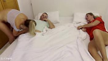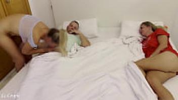 In order to show her affection for her spouse, the girlfriend sneaks into the bedroom of the swinging couple.