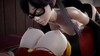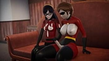 Incredibles: Double Futa: Helen creampied Violet Parr in 3D porn