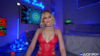 Incredible blonde beauty is showered with love in a missionary fashion in front of her boyfriend.