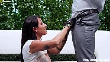 A gorgeous British boss woman wearing stockings Young Employee is adored by Holly Kiss! Passionate adoration and intense action