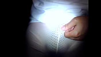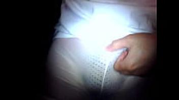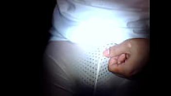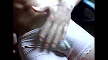 In tiny white tights and shorts, a girl masturbates till she has a urinating orgasm.