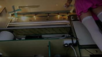 Beautiful teen upskirted at work.