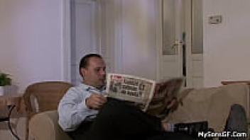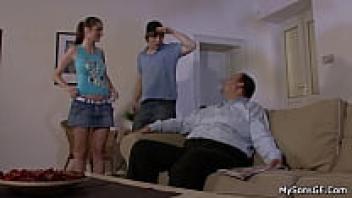 He caught blonde girlfriend riding elderly man's enormous cock.