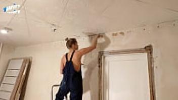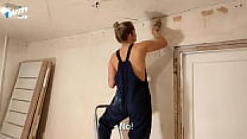 The employee worked with her pussy while wearing a large cumshot on her face, and she failed to complete the task on time.