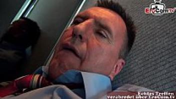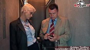In the elevator, a German blonde with short hair gets anal.
