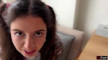 During the time that her parents are away, the horny little stepsister works on her sexual competencies with her brother.