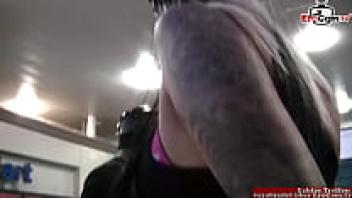 A teen with petite tits and a tattoo receives a cumshot on her flawless ass.