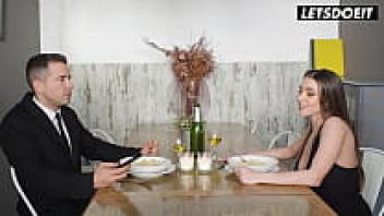 This gorgeous brunette is constantly in the mood for intense sex after kissing her lustful man.