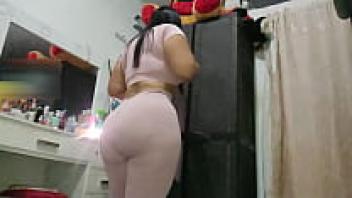Big ass stepmother wearing tight lycra is captured by a hidden camera. CAMELTOE