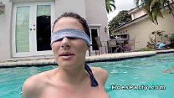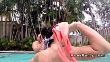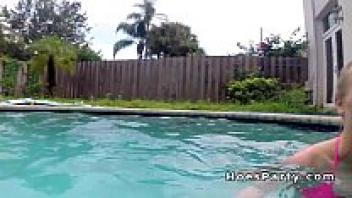 At a pool party, two attractive people got into a fight.