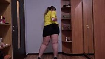 The bbw wakes up with anal plug in a big ass, begins to masturbate her hairy pussy, makes double penetration. Fetish.