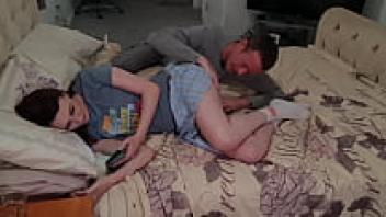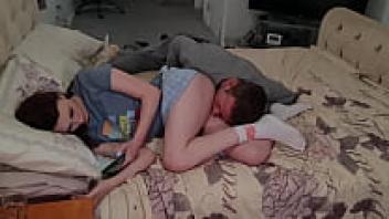 A naive teenager had orgasms and was loved on her bed.