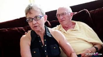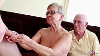 At the First MMF Threesome Sex with Big Dick Boy, the elderly grandmother and her spouse