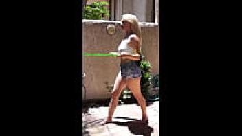 A blonde bitch with large natural breasts and a foot fetish