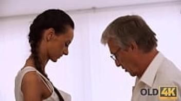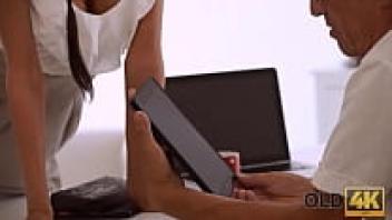 OLD4K. Evelyn Neill, a Czech MILF, obeys the elderly man who bumps into her at work.
