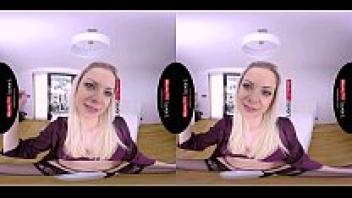 During a user date, Jacky Babe, a blonde German housewife wearing spectacles, had three orgasms.