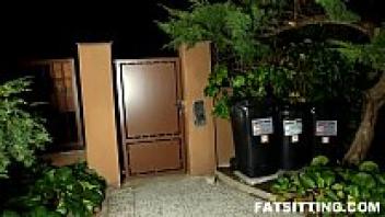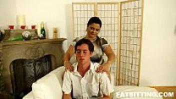 The fat girl's ass is so big that it covers two males' heads.