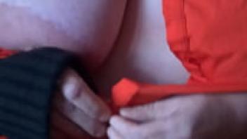 tiny with large breasts that are greased