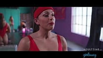 Exercise Facilities Lesbian who is adaptable Redhead Charlie Red twerks with Alecia Fox.