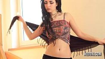A chain pussy performer with pierced nipples and a busty goth babe playing the guitar