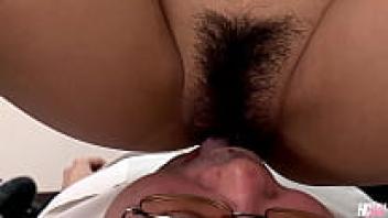 A gorgeous Japanese woman with a tan gets her hairy pussy sucked before receiving intense affection.