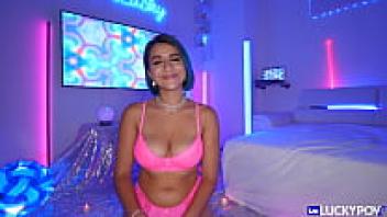 Point of view of a busty Italian stepmother having taboo sex with her stepson