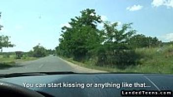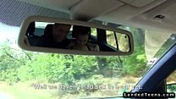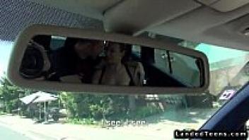 In the car, a naturally curvy teen gets a facial.