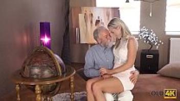 OLD4K. Teenage girl gets everything she wants from an elderly geography teacher.