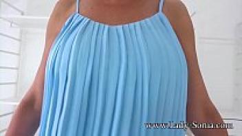 Lady Sonia, a mature and attractive British woman, plays with her erect nipples.