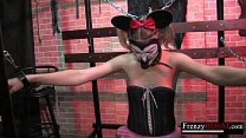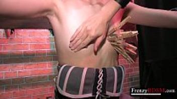 Tit whipping and brutal caning of amateur bdsm slaves with red hair Bunny suffering from clamped nipple torments and strict spanking