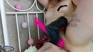 Following the completion of college, a horny and naughty student had a big Labia dildo orgasm while wearing a mini skirt and black panties.