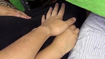 RISKY HANDJOB UNDER THE TABLE OF A STUDENT