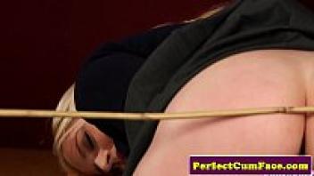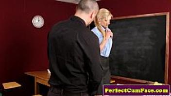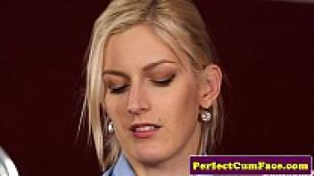 My stepmother's face after a deepthroat blowjob has a huge cumshot.